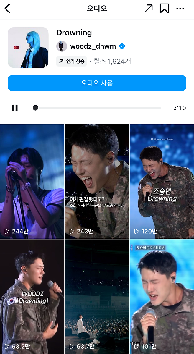 드라우닝으로 시작해 우즈의 다른 노래들도 함께 뜨고 있다고 한다.