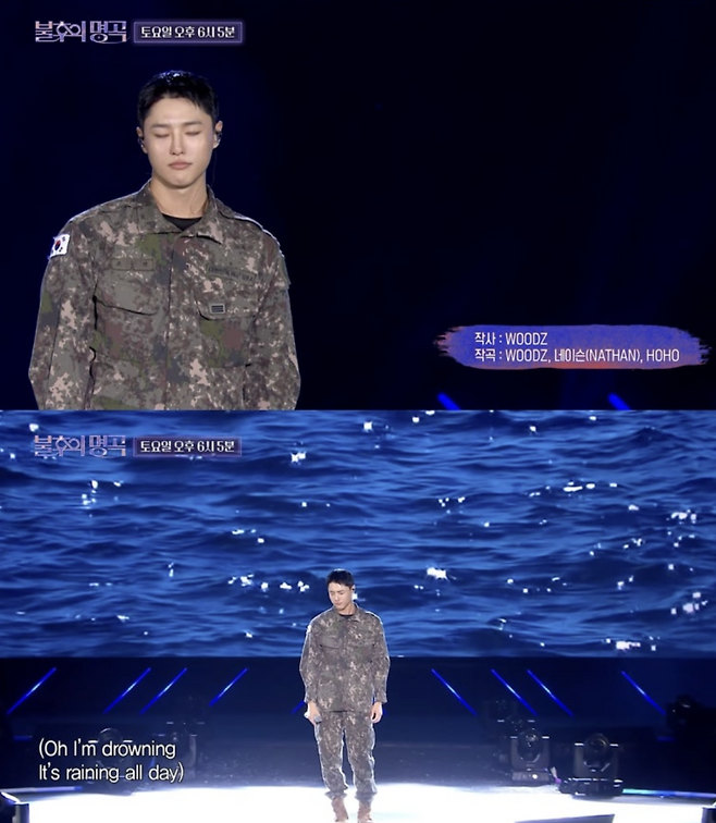 우즈(WOODZ)가 조승연 상병으로 등장해 자작곡 드라우닝을 불렀다.