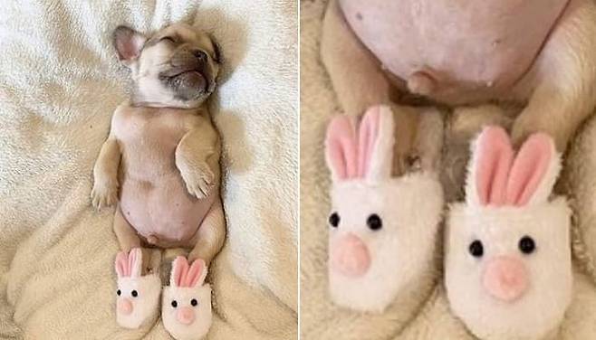 토끼 슬리퍼를 신겨놓고는 잘 지내고 있더라구요 ㅋ