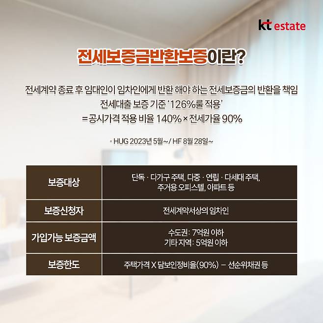 또 전세사기 여파로 주택도시보증공사(HUG)는 2023년 5월부터 집값 대비 보증금 비율이 90% 이내일 때만 보증할 수 있도록 기준을 바꿨으며 한국주택금융공사(HF)도 전세대출 보증 기준에 '126%룰'을 도입하고 나섰습니다.