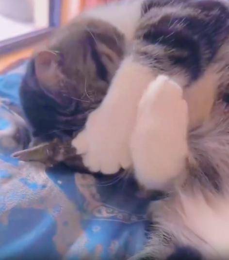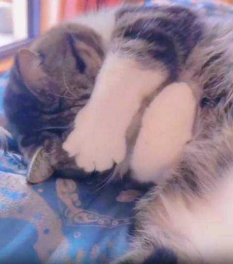 햇살이 따뜻하게 내리쬐던 오후, 고양이 한 마리가 포근한 바닥 위에 옆으로 누워 있었습니다. 잔잔한 숨결에 따라 옆구리가 살짝씩 오르내리고, 길게 늘어진 꼬리는 나른함을 말해주었죠. 하지만 이 고양이를 특별하게 만든 건 그 모습이 아니었습니다.