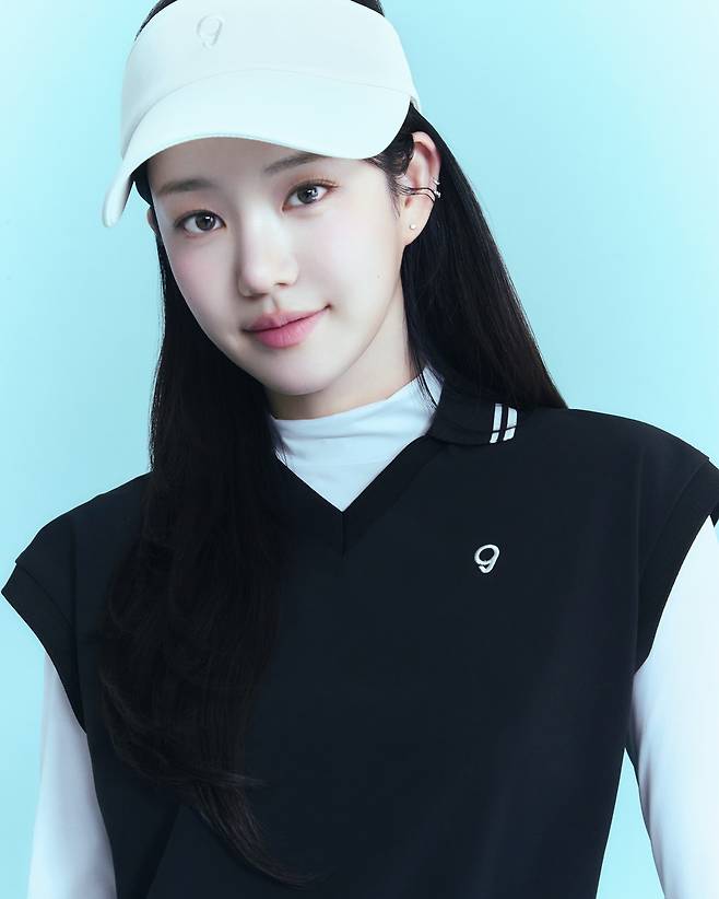 사진 속 이유비는 골프웨어를 입고 청순한 미모를 뽐내고 있습니다.