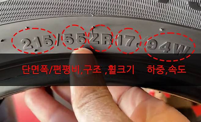 215/55R17 94H 형식의 규격 정보 이해