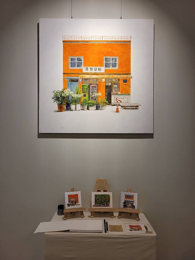상가에 여러 겹으로 붙어있던 간판들은 어느 순간 깔끔하고 획일화된 모습으로 변화하게 되었고, 가끔씩은 오래된 간판들만의 개성이 그립기도 했다. 그래서 길을 거닐다 마주치는 독특한 옛날 간판을 달고 있는 가게들의 모습을 큰 각색 없이 그대로 그려냈다.