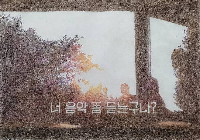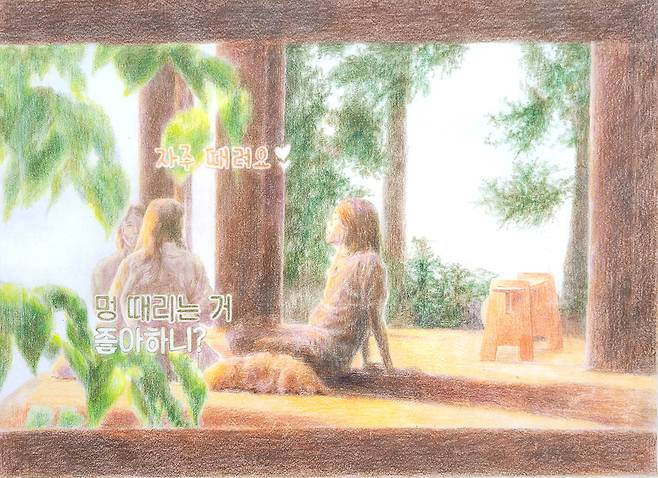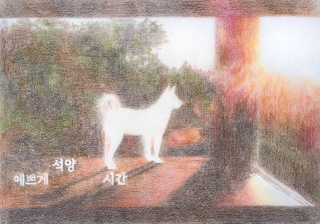 드로잉 작업들은 마음에 와 닿은 방송 장면을 캡처 및 출력 후 순지를 위에 대고 따라서 그려낸다. 현실에서 잠시 멀어져 고즈넉한 일상을 보내는 모습을 통해 지친 일상에서 잠시 정서적인 탈출을 경험할 수 있었고, 해당 장면을 손으로 그려내며 그 감정을 되새김한 작업이다.