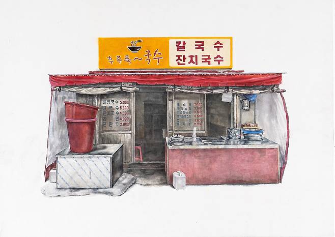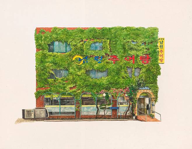 상가에 여러 겹으로 붙어있던 간판들은 어느 순간 깔끔하고 획일화된 모습으로 변화하게 되었고, 가끔씩은 오래된 간판들만의 개성이 그립기도 했다. 그래서 길을 거닐다 마주치는 독특한 옛날 간판을 달고 있는 가게들의 모습을 큰 각색 없이 그대로 그려냈다.