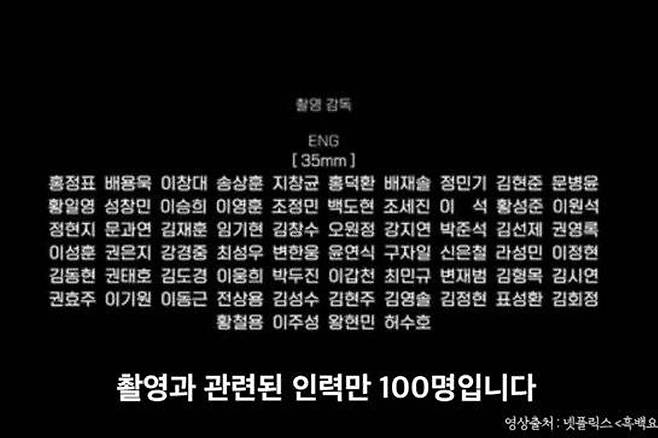 흑백요리사는 실제로 지난 1월 촬영되어 9월에 공개됐다. 즉, 편집에만 약 9개월이라는 시간이 소요됐다는 것이다. 흑백요리사의 엔딩크레딧을 살펴보면 촬영 인원만 100명 수준으로 확인됐다. 출연자 수와 같은 수의 촬영 전문가가 투입됐으며 흑백요리사에 투입된 총인력은 300여 명 미만으로 추측된다.
