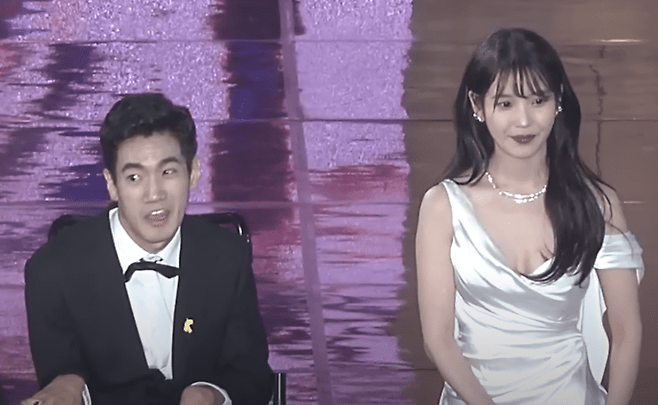 시상식이 끝난 뒤 수상자들이 한자리에 모여 기념사진을 촬영하는 시간이 있었는데 여기서 아이유의 인성이 드러나는 장면이 포착되면서 화제가 되었습니다. 아이유는 무대 위에 서있던 선배 배우 이성민에게 다가가 인사를 했고 뒤에 있던 배우 하지성에게도 인사를 건넨 뒤 옆자리에 잠시 서있다가 하지성에게 앞쪽으로 가라고 이야기하며 손짓을 했습니다.