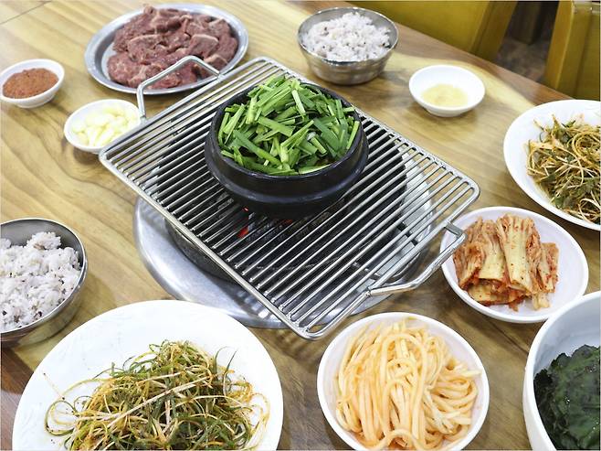 고기 없이 된장찌개만 먹는 손님에게도 숯불에 직접 끓여 먹을 수 있도록 정성껏 준비된 상차림은 식당의 철학과 손님에 대한 배려를 엿볼 수 있게 해준다.