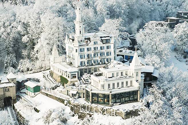 겨울이 되면 호텔은 온통 흰색으로 변하는데요. 눈 내린 풍경이 무척 아름답습니다.