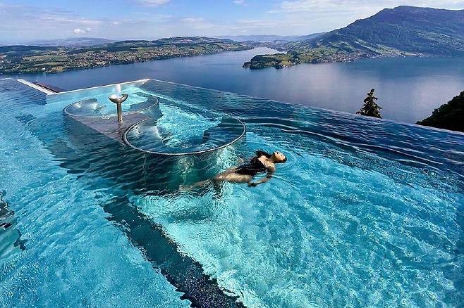 루체른 호수를 한눈에 담을 수 있는 인피니티 풀의 풍경은 전망대나 다름없습니다.