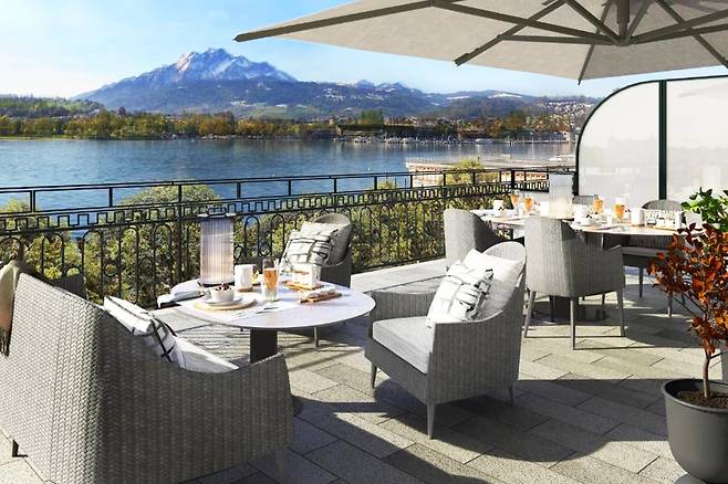 루체른 호수 앞에 자리 잡고 있는 호텔은 전망 좋은 곳으로 유명한데요.
