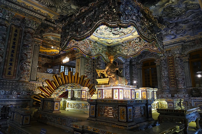 ‘베트남 국민들이 가장 싫어하는 왕’이라는 카이 딘 황제. 그에 대한 반감 때문일까 카이 딘 황제의 유골은 동상으로부터 18m 아래에 안치되어 있다. 심지어 그 사이는 9m 두께의 콘크리트가 가로막고 있다. 화려한 황릉 이면에 숨겨진 어두운 역사의 업보가 느껴진다.