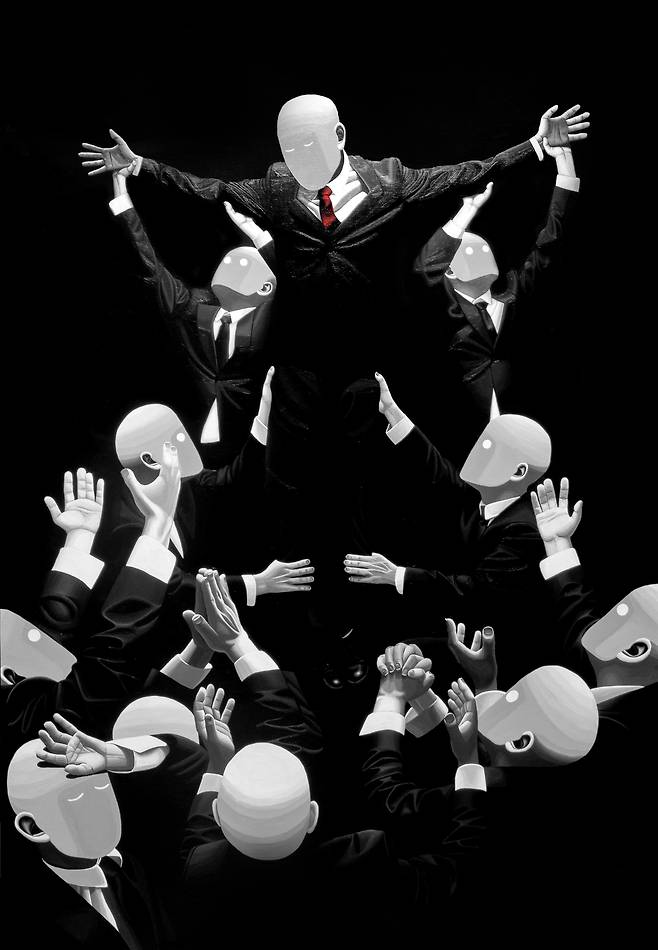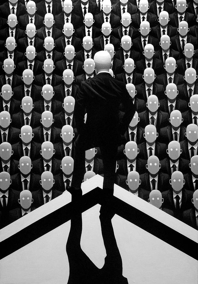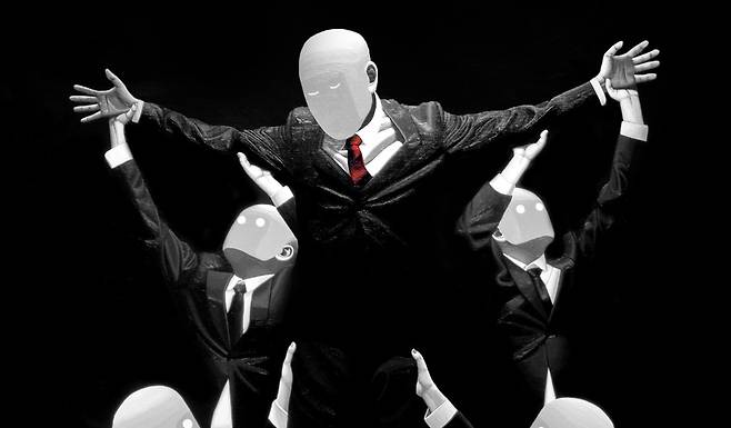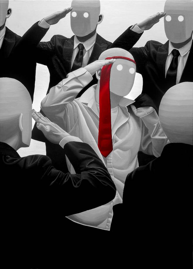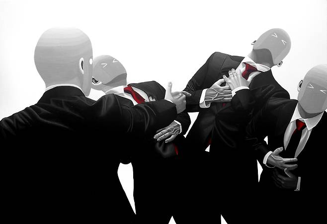작품에는 민머리에 양복을 입은 캐릭터들이 주가 되어 나오는데, 이 캐릭터는 어떤 사회 현상의 문제점을 주제로 작품을 진행할 때 그 문제점이 단순히 어떤 계층, 성별, 세대에 갇혀있는 것이 아니라 전 사회구성원 모두에게 해당한다는 것을 표현하기 위함이었고 그래서 인물이 가진 개성들을 최소화한 캐릭터를 만들게 되었다.