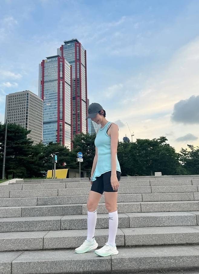 배우 송선미가 쇼츠 레깅스 핏의 애슬레저 러닝룩으로 50대 나이가 믿기지 않는 슬림한 비율을 뽐냈다.