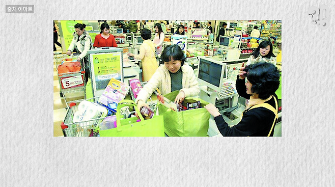 이마트 가방이 인기를 끌게 된 것은 이른바 ‘선점 효과’의 덕이 크다. 국내 대형마트 가운데 가장 먼저 재사용이 가능한 장바구니를 도입했고, 기존 일회용 쇼핑백을 쓰던 소비자들에게 강렬한 인상을 줬다는 거다.