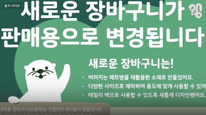 근데 애초에 이마트 장바구니는 계산대에서 구매하는 게 아니라 보증금 명목으로 500원을 주고 대여하는 상품이었다고 한다. 이에 사용한 장바구니를 이마트 고객센터로 가져가면 현금 500원을 돌려줬다고.