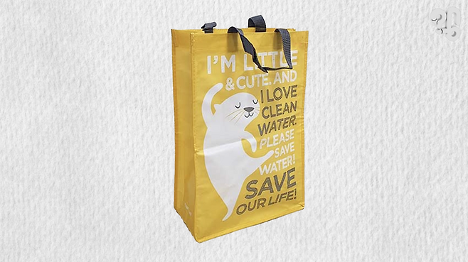 가방 소재를 바꾼 김에 이마트 측은 가방 색깔도 이마트 로고와 비슷한 노란색을 입히고, 동물들을 그려 넣기 시작했다고. 가장 흔하게 볼 수 있는 17ℓ 사이즈 가방의 이 하얀 동물은 고양이다, 물범이다, 북극곰이다 말이 많았는데 정확히는 해달이라고 한다.