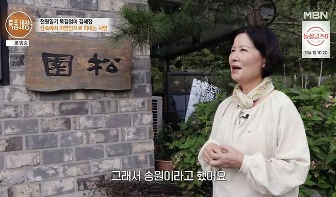 이혼 후 김혜정은 도시 생활을 청산하고 자연 속에서의 삶을 선택했다. 그녀는 경기도 양평에 위치한 1000평 규모의 전원주택에서 생활하고 있다. 이 집은 과거 드라마 '전원일기’의 촬영지 근처에 위치해 있으며, 김혜정은 이곳에서 자연과 함께하는 삶을 즐기고 있다.