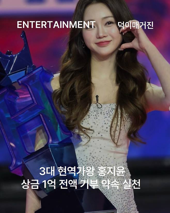 홍지윤은 방송 이후 자신의 SNS를 통해서도 기부 의사를 다시 한번 밝혔습니다. 그는 “여러분의 응원 덕분에 우승을 하게 돼 감사하다”며 “이 영광을 긴 시간 시청하고 응원해준 분들께 바치고 싶다”고 전했습니다. 또한 과거 우승 시 상금을 기부하겠다고 약속했지만 지키지 못했던 일이 마음의 숙제로 남아 있었다며, 이번에 그 약속을 실천하게 되어 매우 행복하다고 밝혔습니다.