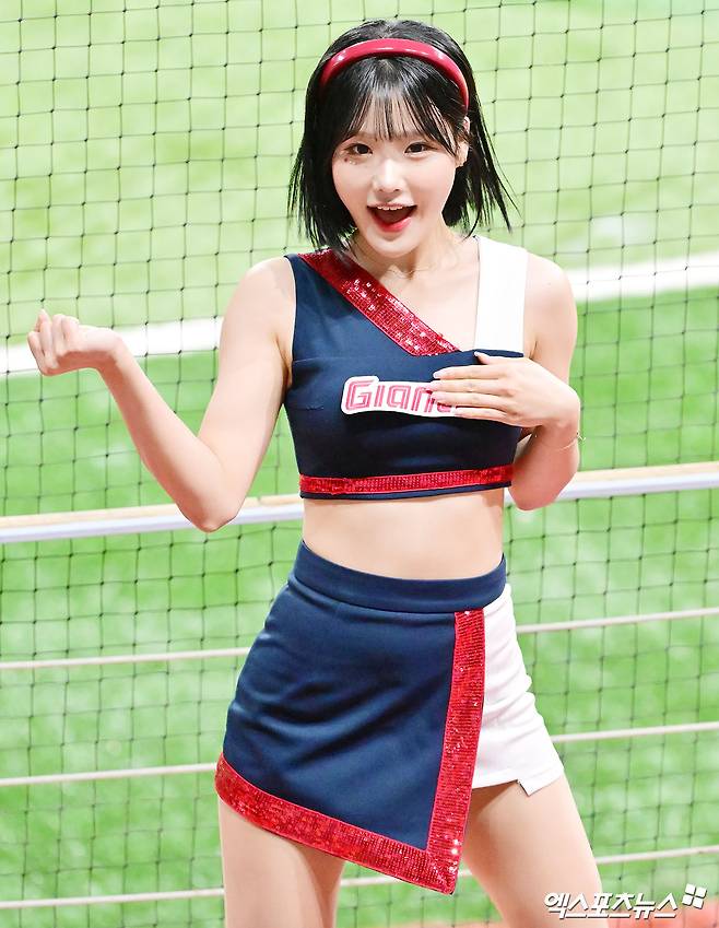 (엑스포츠뉴스 고척, 김한준 기자) 30일 오후 서울 구로구 고척스카이돔에서 열린 '2025 신한 SOL Bank KBO리그' 롯데 자이언츠와 키움 히어로즈의 경기, 최홍라 치어리더가 멋진 공연을 선보이고 있다.