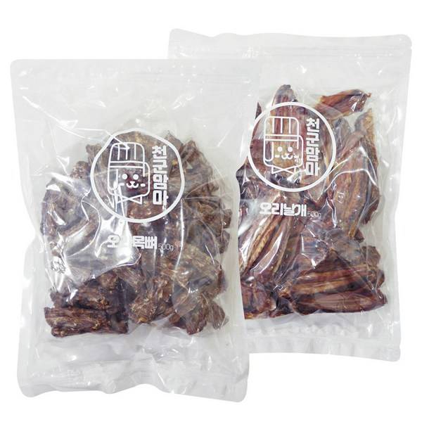 천군맘마 강아지 대용량 수제간식 오리목뼈 500g + 오리날개 500g