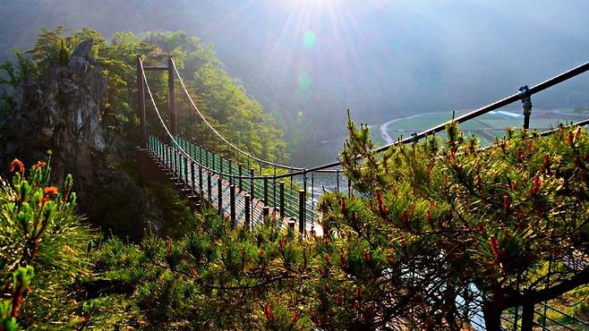 수직 절벽 위를 걷는 아찔함, 강변에서 맞는 고요한 밤. 이 두 가지가 모두 가능한 여행지가 있다.