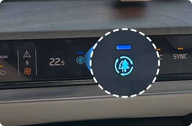 내기 순환 버튼을 누르면 실내로 들어오는 외부 공기 유입을 차단하게 됩니다. 이 상태에서 에어컨을 작동하면 실내 공기가 에어컨 필터(캐빈 필터)를 거쳐 순환하게 되는데요. 이 과정은 공기청정기와 유사합니다. 실제로 최근 출시된 풀 오토 에어컨 차량에는 공기 청정 기능이 달려 나오기도 하죠!