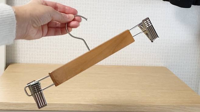 저는 이 바지걸이를 치마걸이로 사용하고 있어요. 긴 치마는 접으면 주름이 잘 생기기 때문에 이 바지걸이에 걸어두면 집게 자국도 남지 않고 좋더라구요!