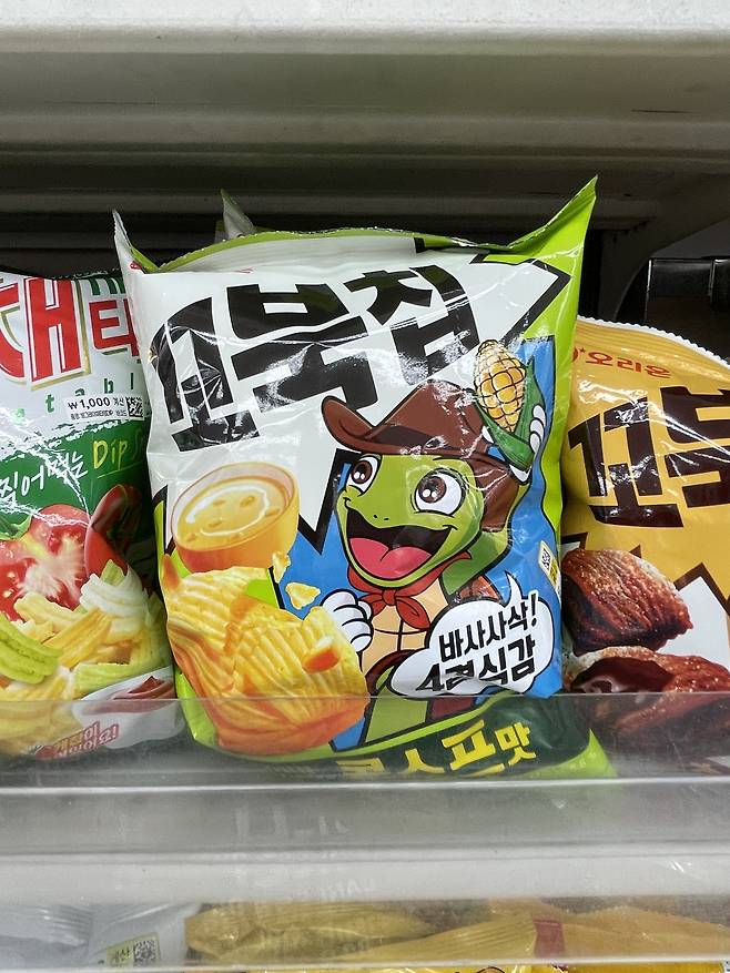 바삭하면서도 입안에 콘스프 국물처럼 퍼지는 풍미가 포인트로 기존 꼬북칩 중에서도 가장 대중적이고 누구나 좋아하는 맛으로 인기가 높아요.