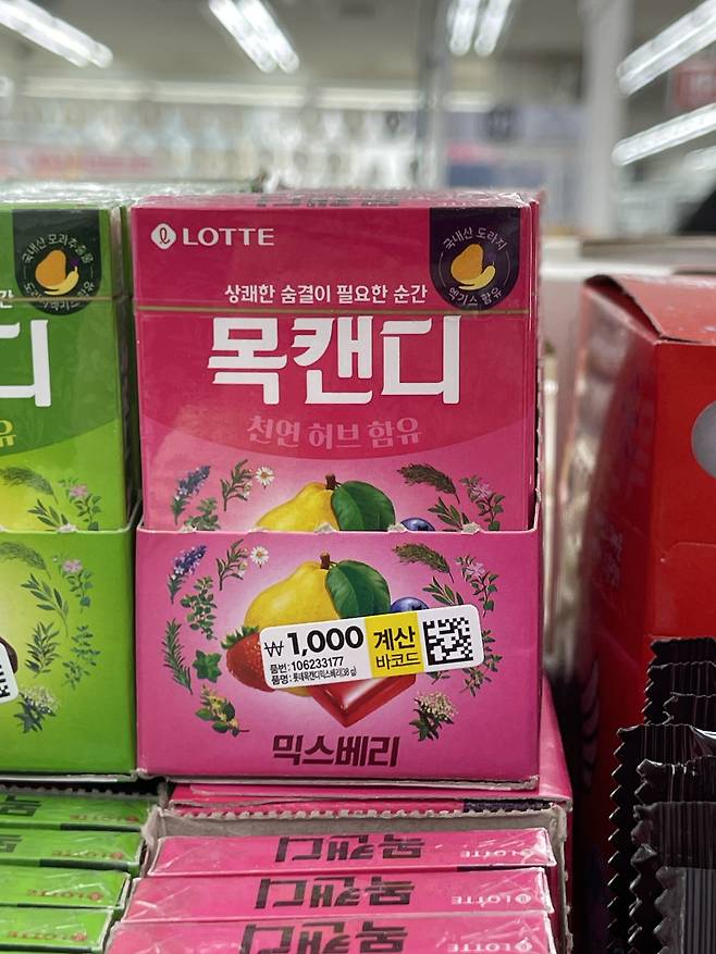 기존 목캔디의 시원한 멘톨 느낌보다 달달한 베리향이 강조되어 목이 칼칼할 때는 물론, 그냥 입이 심심할 때도 먹기 좋은 타입이에요.