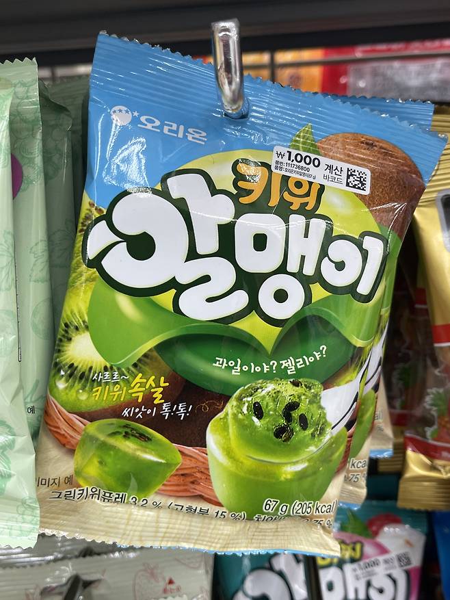 진짜 키위 알맹이처럼 생긴 젤리인 오리온 키위 알맹이는 겉모습도 키위 씨가 박힌 듯한 비주얼로 리얼 식감을 강조했어요.