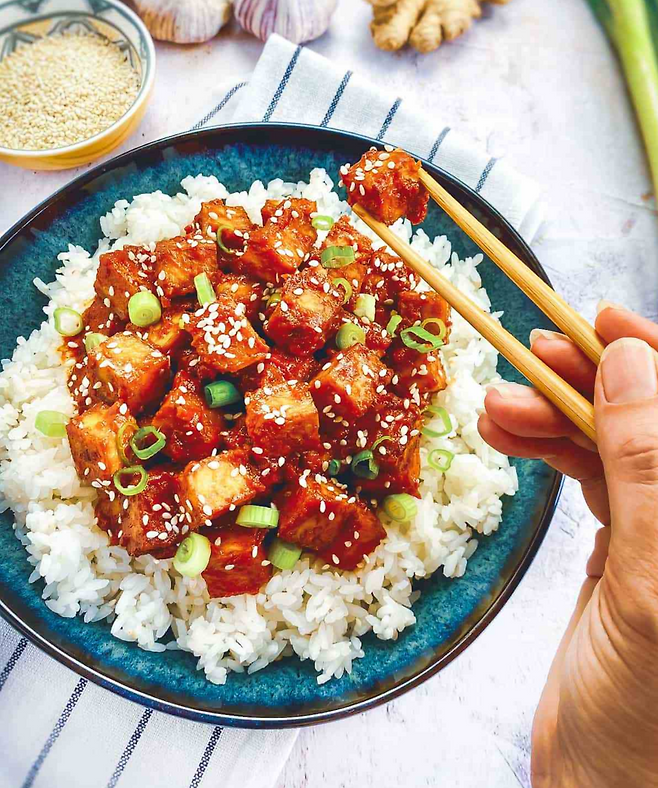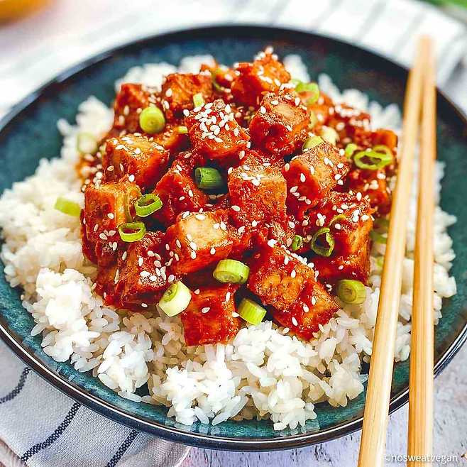 단단한 두부, 고추장, 간장, 물, 아가베시럽(또는 메이플 시럽), 식초, 타히니(또는 참기름), 다진 마늘, 다진 생강, 전분가루(선택), 통깨, 쪽파