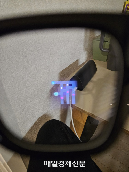 이 상태에서 손가락을 움직이거나 안경 우측 테를 건드리는 것을 통해서 화면상 커서를 움직일 수 있습니다. 안경 우측테는 터치패드 같아서 상하좌우로 움직이는 것이 가능합니다. 하지만 손가락을 통한 조작이 안경 테를 만지는 것보다 훨씬 잘 통하고 편합니다.