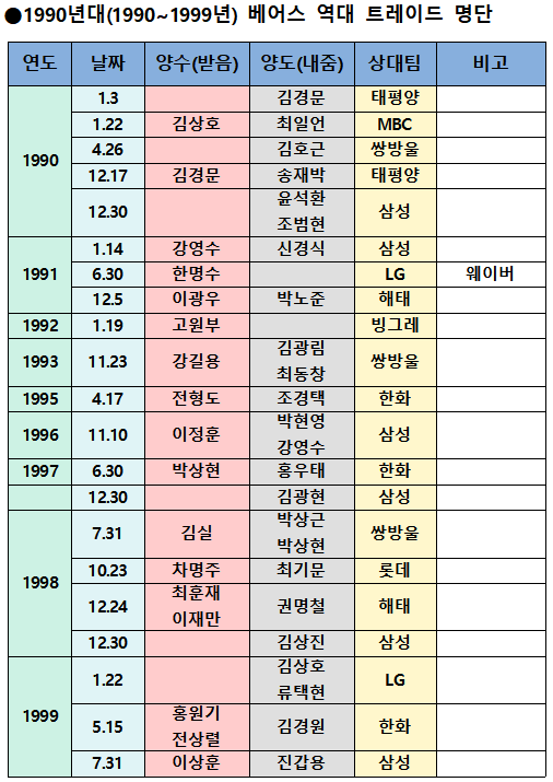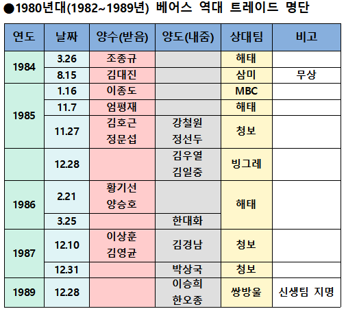 역대 트레이드 명단 중에는 KBO 신생팀 창단으로 인한 트레이드도 포함됐다.