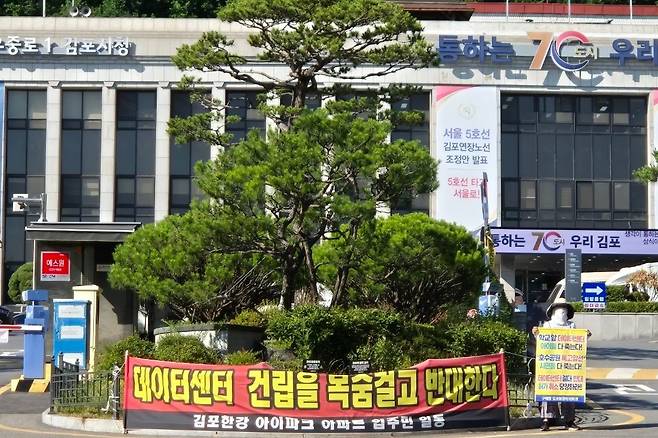 이는 고양시를 지역구로 둔 김영환 더불어민주당 의원이 지난해 말 데이터센터 건축허가 직권취소와 GS건설의 사업 철수를 요구하며 시·도의원과 주민들이 지켜보는 앞에서 삭발을 진행하는 등 정치적 문제로 번지고 있기 때문이다.