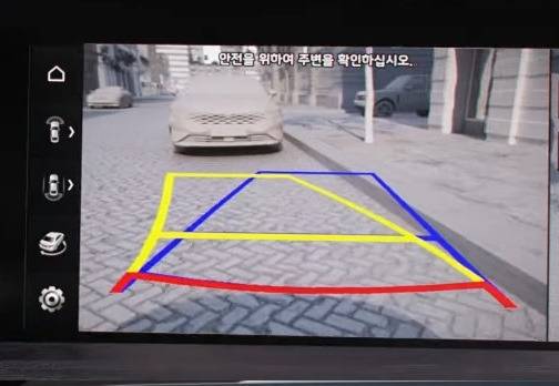 후방카메라에 표시되는 가이드라인은 대체로 파란선, 노란선, 빨간선으로 구성된다.