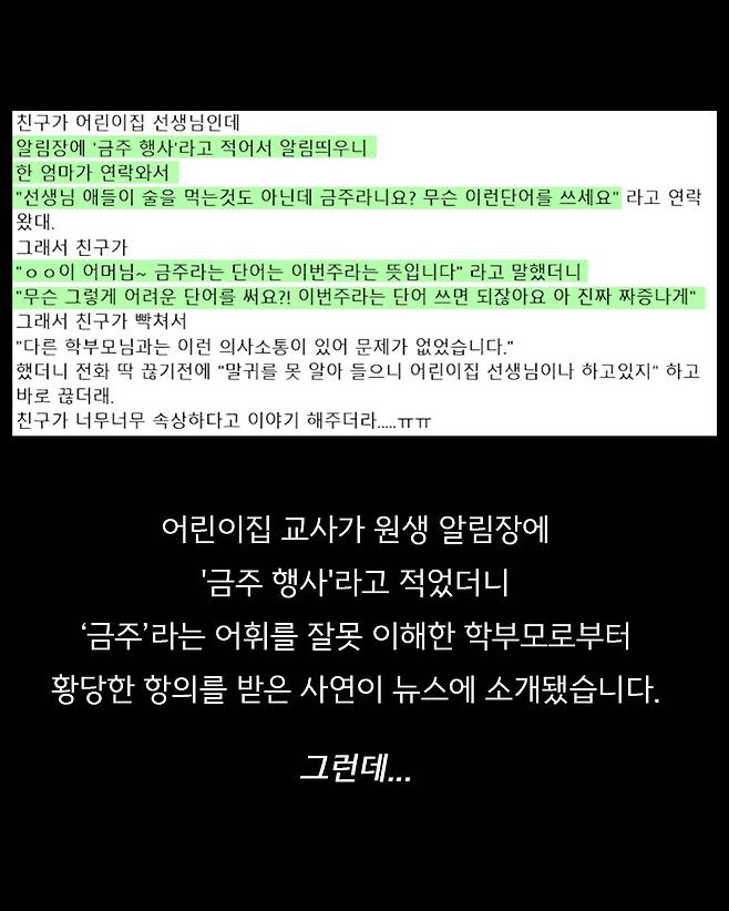 "금주 행사요?" 요즘 어린이집 학부모의 황당 민원 내용