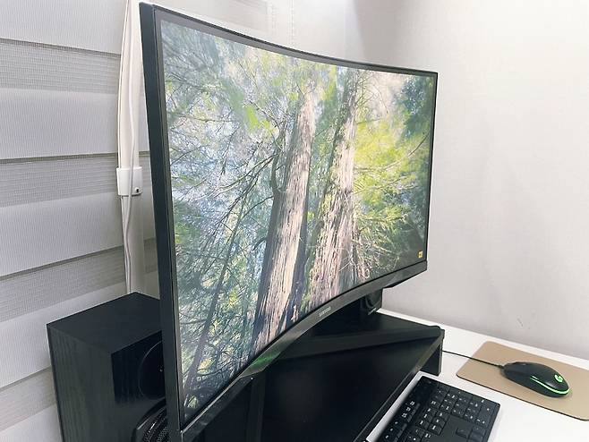 특히 레이싱 게임이나 오픈월드 RPG를 할 때 그 매력이 극대화되었는데요. 레이싱게임을 할때는 마치 실제로 차 안에 앉아있는 것 같은 느낌이 들었습니다. 일반 영상을 볼때도 화면 전체가 시야를 감싸는 듯한 느낌이 들어서 게임에 더욱 몰입할 수 있었어요.