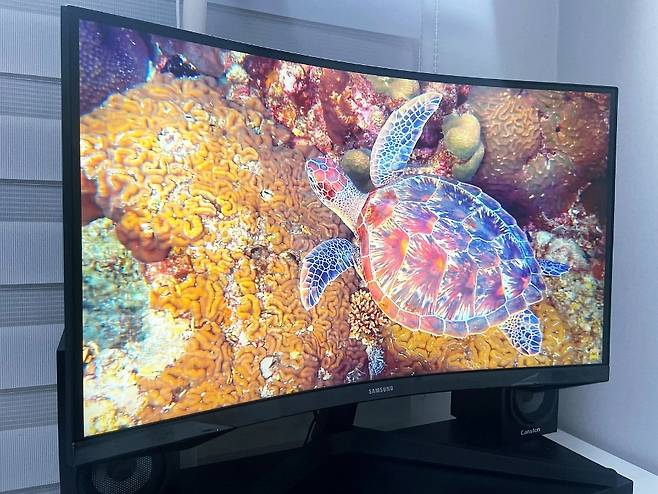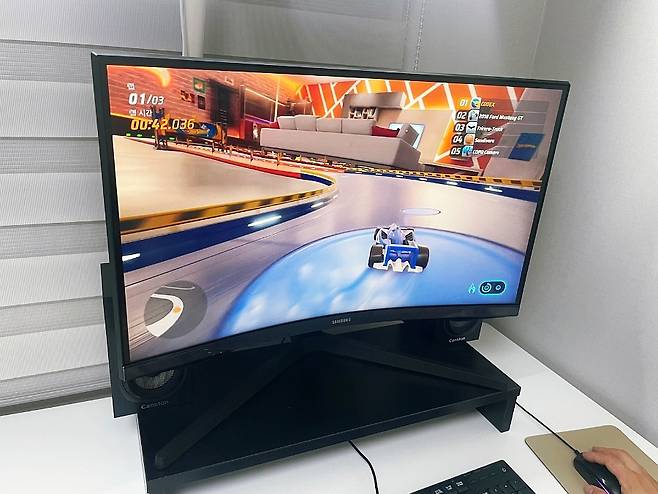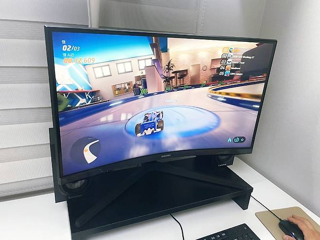 또한 커브드 디자인으로 인해 눈의 피로도를 줄여주는 느낌을 받았는데요. 화면의 모든 부분이 눈으로부터 거의 같은 거리에 있기 때문에, 초점을 맞추는 데 드는 노력이 줄어들어 장시간 게임을 해도 눈이 덜 피로해지는 것을 느낄 수 있었습니다.