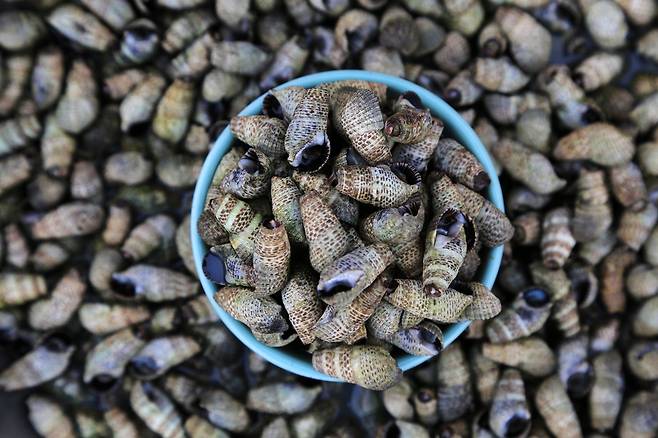 다슬기는 피서철에 자주 방문하는 계곡 곳곳에서 쉽게 잡을 수 있는 식재료입니다. 다슬기는 간에 좋은 미네랄을 많이 함유하고 있어 ‘민물의 웅담’이라 불립니다. 1급~2급수에서 채취할 수 있는 다슬기는 숙취에 좋을 뿐만 아니라 장내 유익균을 증가시켜 장의 면역력을 높여줍니다. 깨끗한 민물에서만 자생하는 식재료지만, 3시간 이상 물에 담가서 해감 후 조리해야 한다는 사실은 꼭 잊지 마세요~!