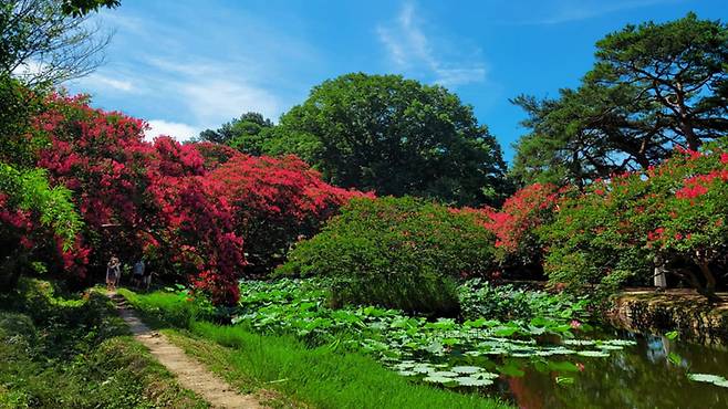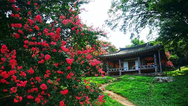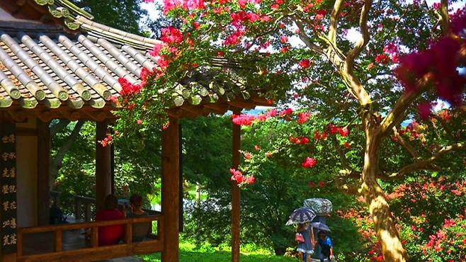 여기에 소나무, 느티나무, 동백나무가 더해져 한 폭의 수묵화를 떠올리게 한다. 정자 마루에 앉아 붉은 꽃을 바라보고 있으면 뜨거운 햇살조차도 고요한 풍경의 일부가 된다.