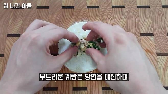 사각형으로 접으면 튀김처럼 바삭한 식감이 살아납니다.