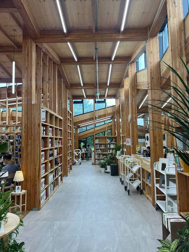 건물 외피는 목재 루버를 활용해 계절에 따라 빛의 양이 달라지도록 설계되었으며, 내부는 커뮤니티 라운지, 북카페, 회랑형 열람 공간으로 구성되어 있습니다. 단순 독서 공간이 아닌, 숲속에서 휴식과 사색을 즐길 수 있는 ‘도심 속 산림 서재’로서의 가치를 지닌 곳입니다.