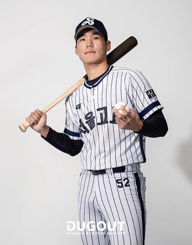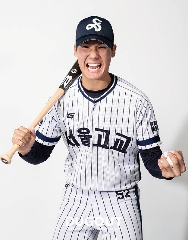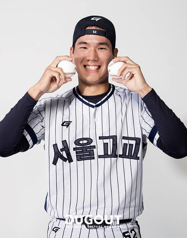 처음 등번호를 정할 때 뚱뚱했던 터라 큰 번호를 다는 게 어울리겠다 싶어서 골랐어요. 근데 52번을 달고 야구가 잘 풀렸고, ‘강남중 52번 걔’라는 얘기를 들을 정도로 점점 이 번호가 제 트레이드 마크가 돼 간다는 느낌이 들더라고요. 그래서 고등학교에 올라와서도 그 기운을 이어가자는 마음으로 계속 달고 있어요.