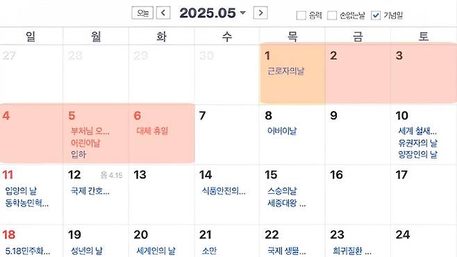 이번 2025년 5월 연휴는 그야말로 초특급 황금연휴입니다.