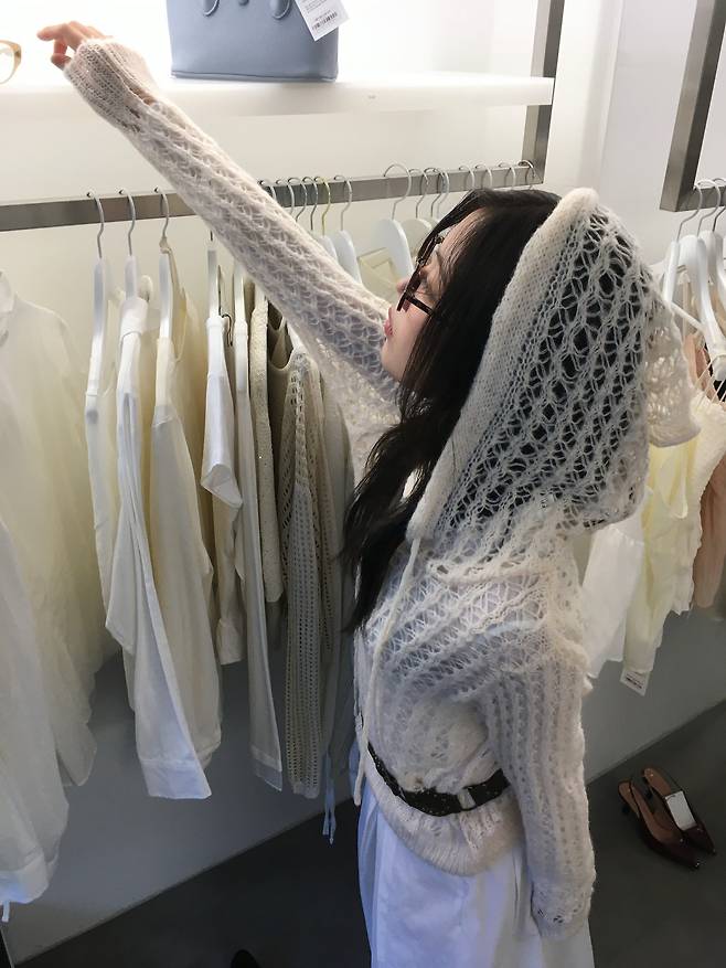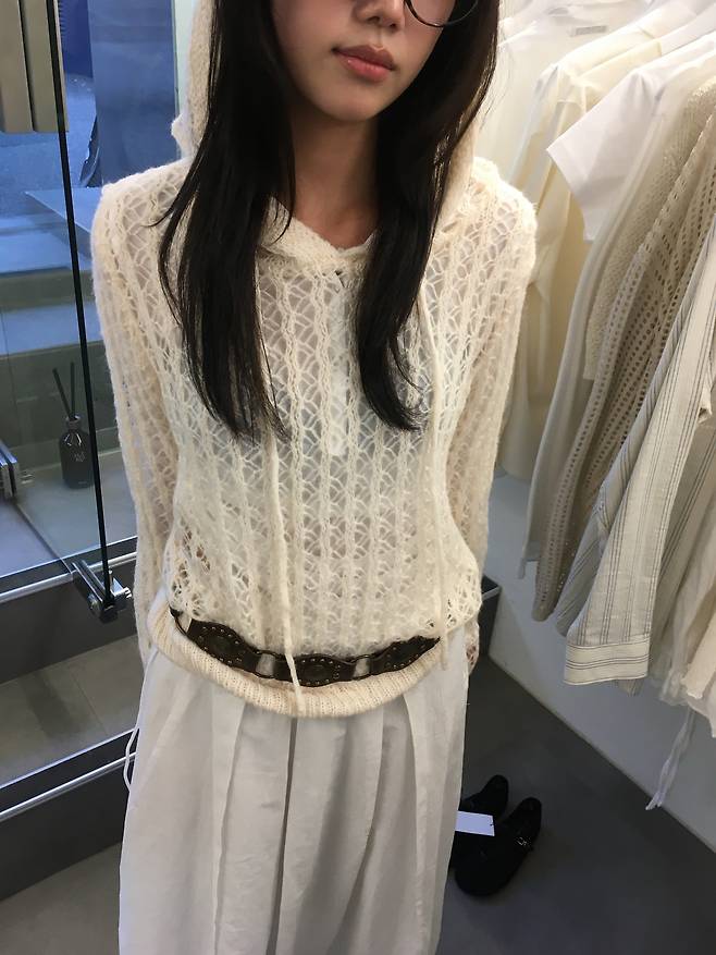 팔 부분이 살짝 비치면 여리여리한 실루엣이 살아나 더욱 매력적입니다.