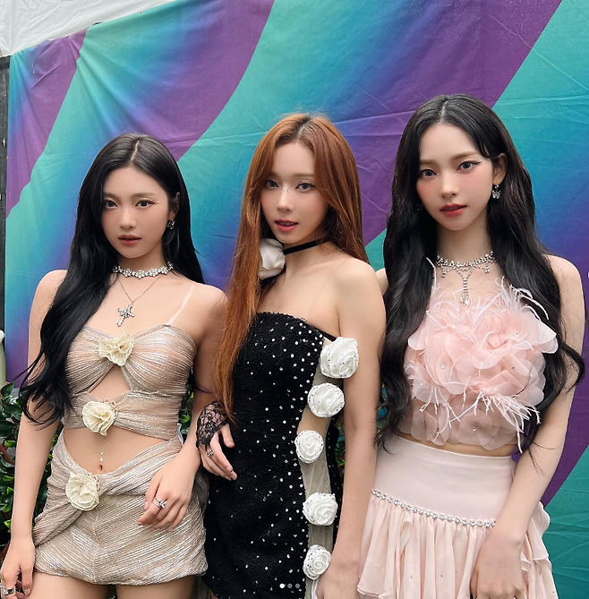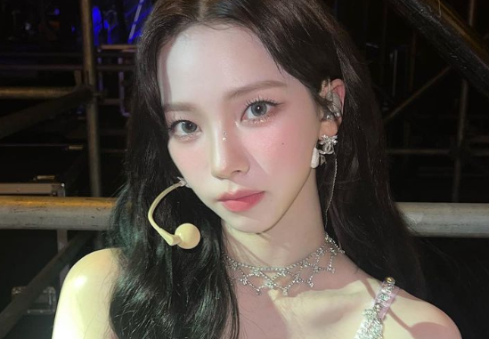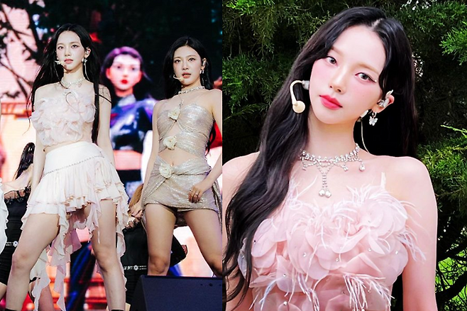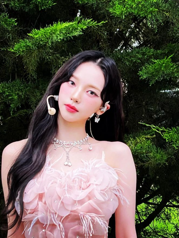 에스파그룹 카리나가 핑크색 드레스룩을 선보였다.