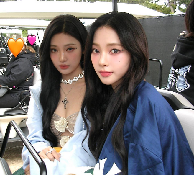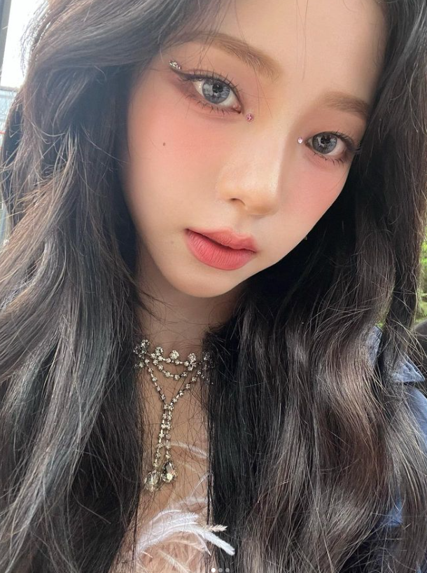 카리나는 칼라 렌즈를 끼고 신비로운 느낌을 자아냈고 화려한 주얼리를 매치했다.
