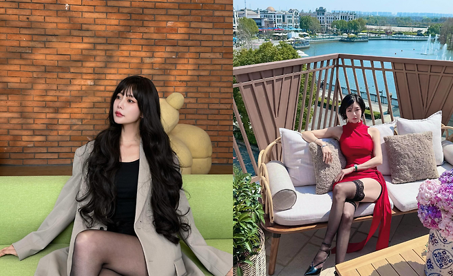 휴양지를 배경으로 클라라가 선보인 레드 드레스 룩이 시선을 사로잡고 있다. 홀터넥 디자인의 선명한 레드 드레스는 과감한 슬릿 디테일로 우아함과 섹시함을 동시에 표현하고 있다. 블랙 스타킹과 힐의 조합으로 시크한 대비를 이루며, 발코니에서 보이는 아름다운 수변 풍경과 함께 완벽한 휴양지 패션을 선보이고 있다. 화사한 수국 꽃과 어우러진 모습에서 여름 리조트 룩의 정석을 보여주고 있다.